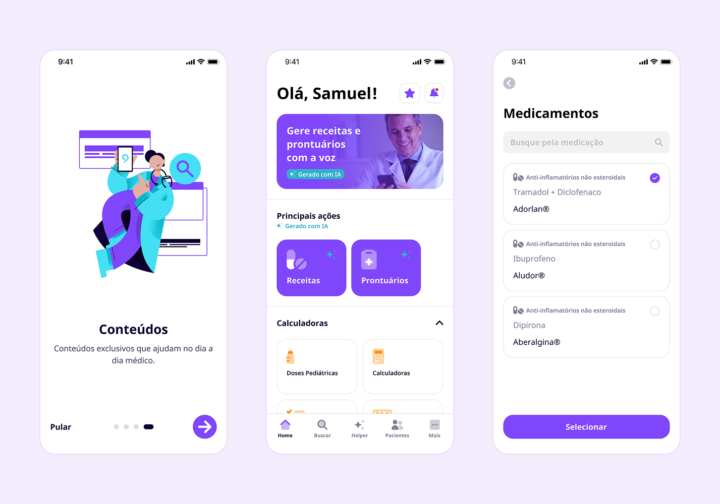 Para os médicos, era essencial ter uma ferramenta rápida e intuitiva que não atrapalhasse o fluxo de atendimento. A plataforma precisava gerar receitas válidas juridicamente, armazenar prontuários de forma segura (LGPD) e oferecer suporte diagnóstico confiável.